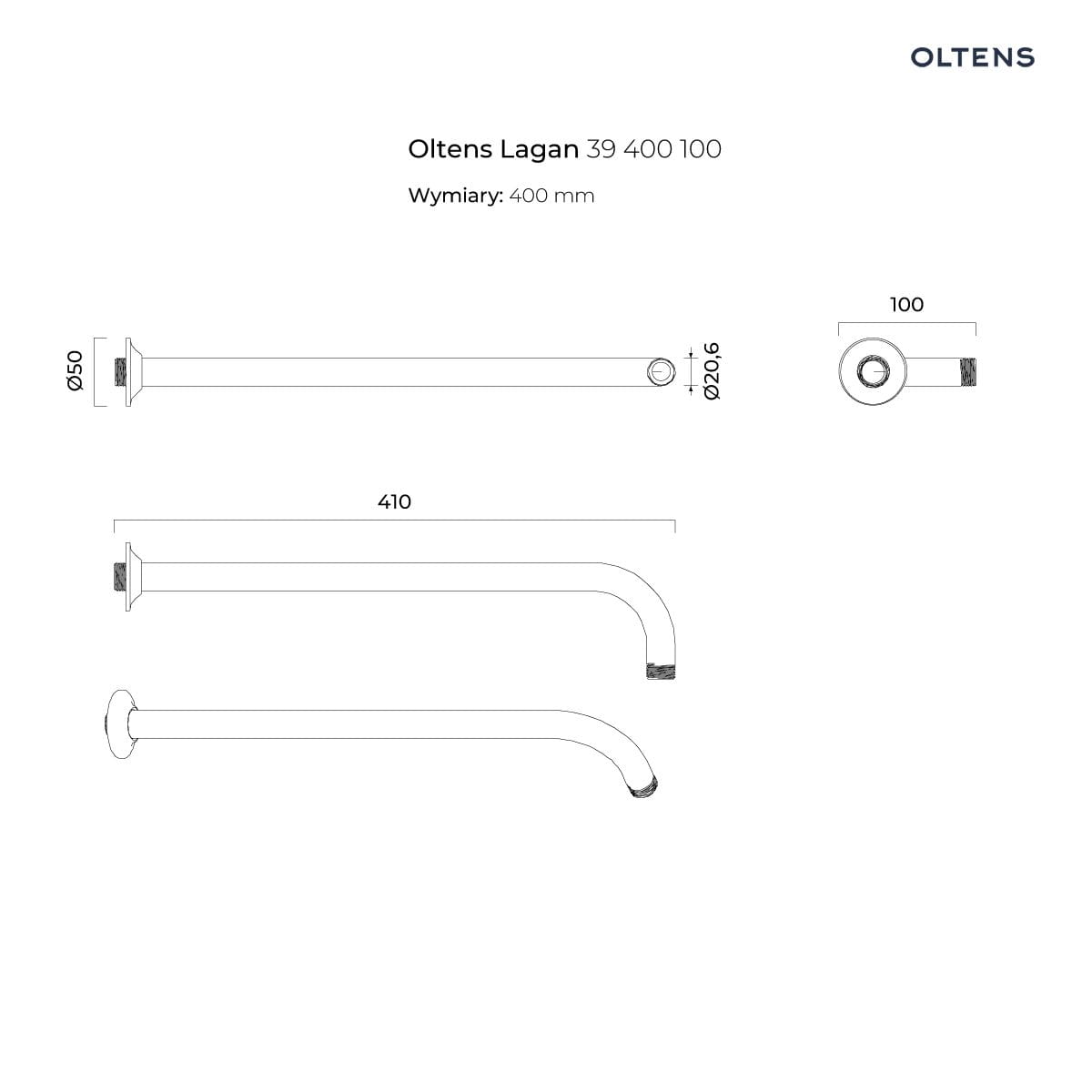 Napisz pierwszą opinię o „Oltens Lagan ramię deszczownicy 40 cm okrągłe chrom 39400100”