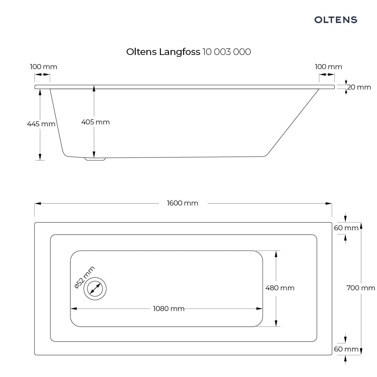 Kolekcja Langfoss Dłuższy bok 160.0000 Kolor Biały Krótszy bok 70.0000 Materiał Akrylowa Odpływ Z boku Pojemność 180.0000 Wyposażenie Nogi