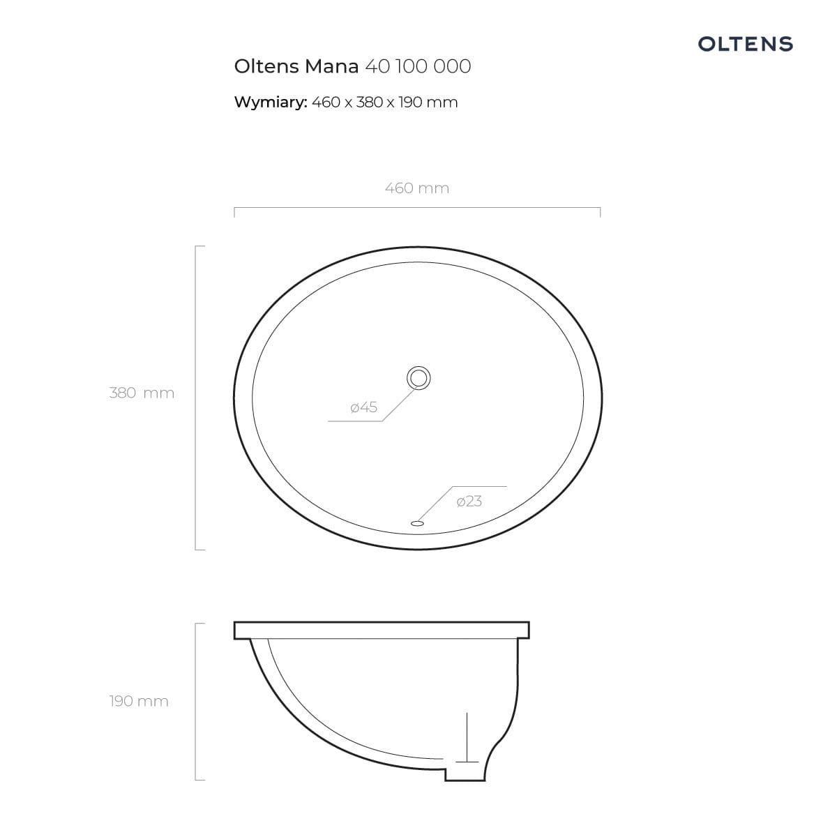 Napisz pierwszą opinię o „Oltens Mana umywalka 46×38 cm podblatowa owalna biała 40100000”