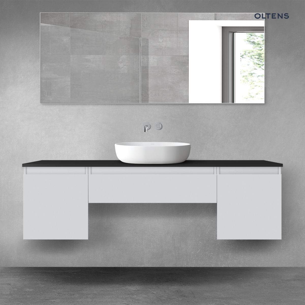 – wisząca szafka podumywalkowa – materiał: płyta MDF, powłoka lakierowana odporna na promieniowanie UV – szerokość 40 cm – głębokość 45,6 cm – wysokość 47 cm – prowadnice: pełen wysuw – szuflady z systemem Oltens SoftClose – kolor szary mat