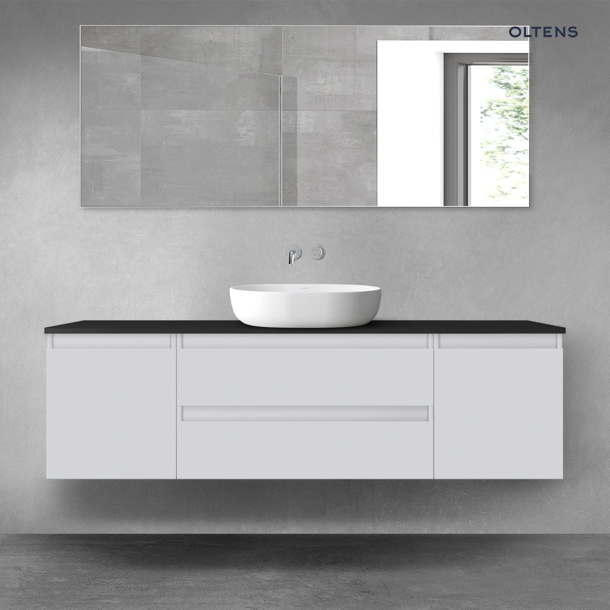 Opis produktu Oltens Vernal zestaw mebli łazienkowych 160 cm z blatem szary mat/czarny mat 68449700 Oltens Vernal szafka 80×45,6×47 cm podumywalkowa wisząca szara 60001700 – wisząca szafka z 2 szufladami