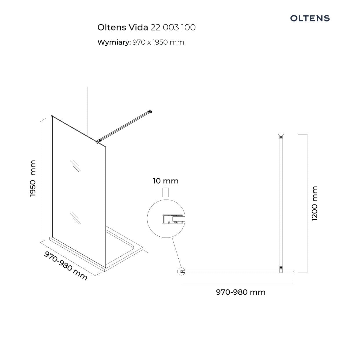 Oltens Vida ścianka prysznicowa Walk-in 100 cm 22003100