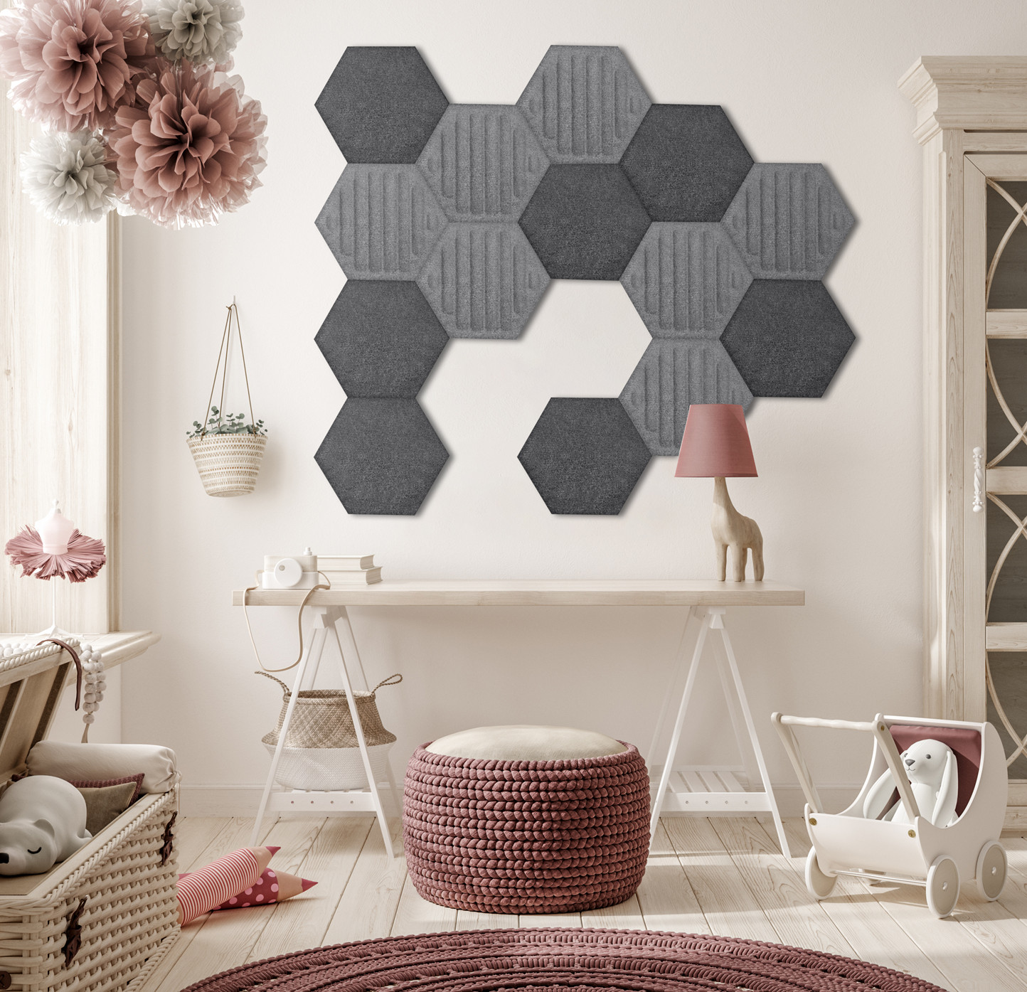 Dekoracyjne panele filcowe 3D, to doskonałe rozwiązanie gwarantujące poprawę warunków akustycznych i izolacyjnych w pomieszczeniach. Wykonane z miłego w dotyku filcu, nie tylko skutecznie redukują echo, ale także izolują wnętrze przed uciążliwym hałasem z zewnątrz. Dodatkowo, cechują się wysoką odpornością na przetarcia oraz pełnią funkcję termoizolacyjną. Możliwości łączenia i układania paneli w różnorodnych konfiguracjach, sprawia, że stają się elastycznym i estetycznym elementem do podkreślenia funkcjonalności każdego pomieszczenia.