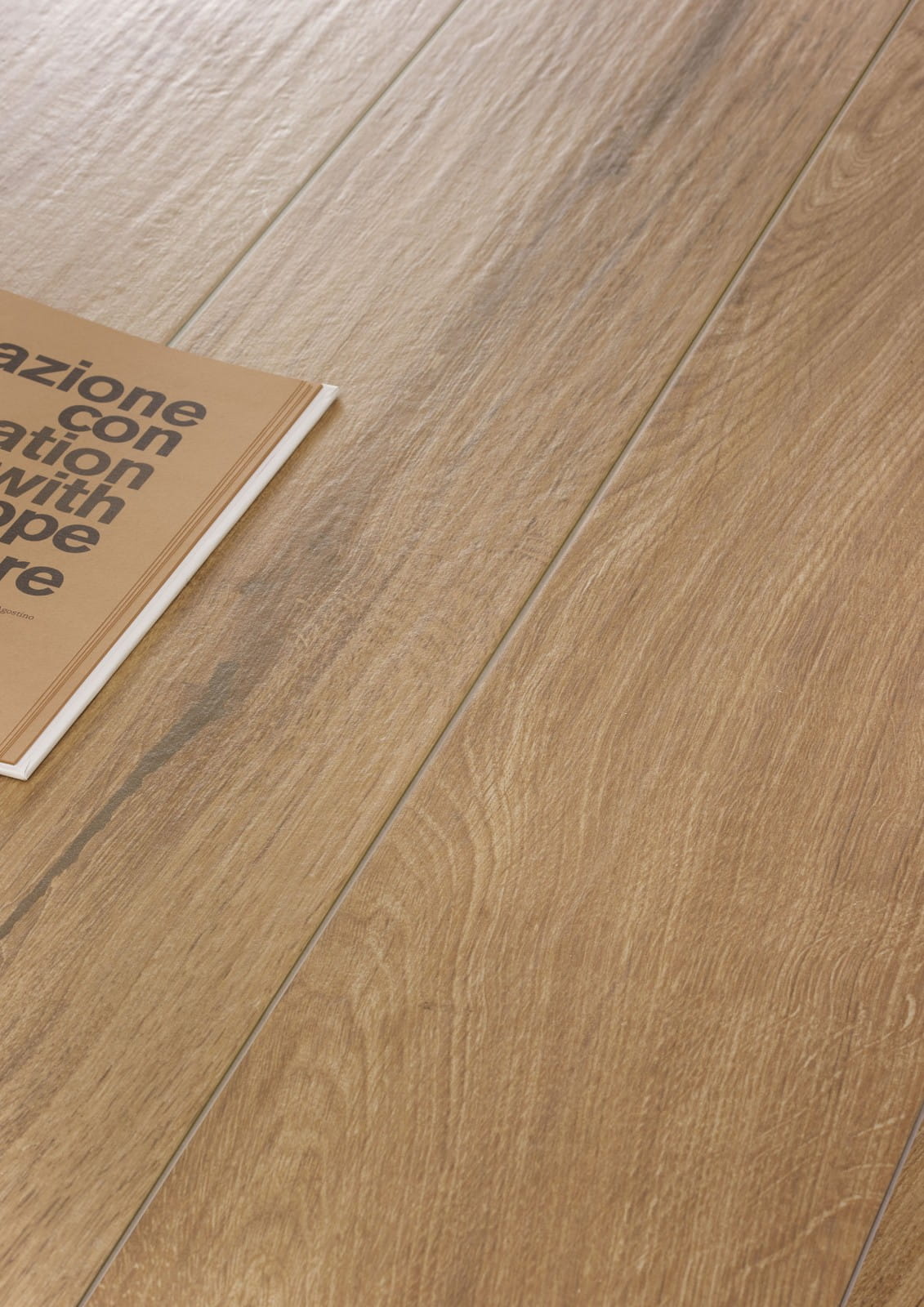 Gres TIMELESS HONEY 24×150 cm od Ceramica Rondine – ciepła imitacja drewna premium To bardzo długi, smukły gres drewnopodobny z włoskiej Rondine w odcieniu Honey – ciepły, miodowo-brązowy z wyraźnymi słojami i naturalnymi przejściami. Format 24×150 daje efekt ciągłych, długich desek z minimalną ilością fug – podłoga wygląda jak prawdziwe, szerokie deski rustykalne, ale bez wad drewna. Matowa, delikatnie strukturalna powierzchnia jest przyjemna w dotyku, nie ślizga się i nie pokazuje smug. Ideal