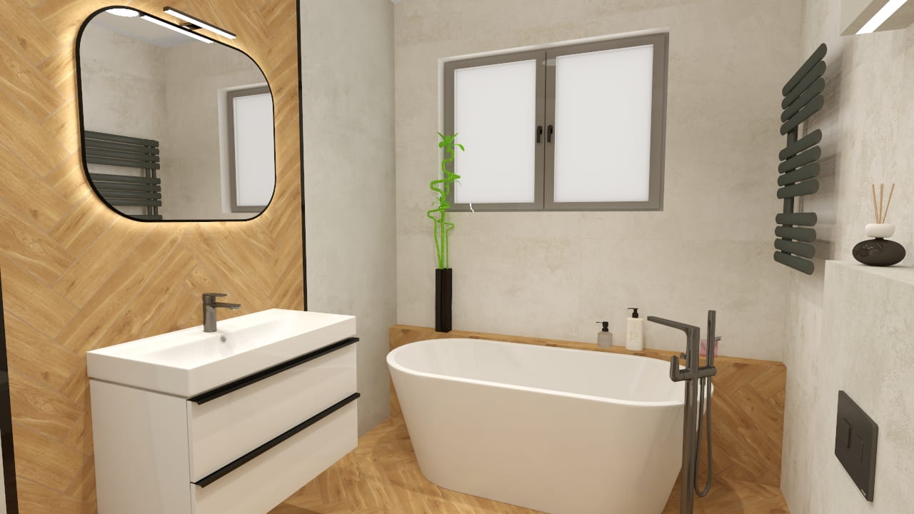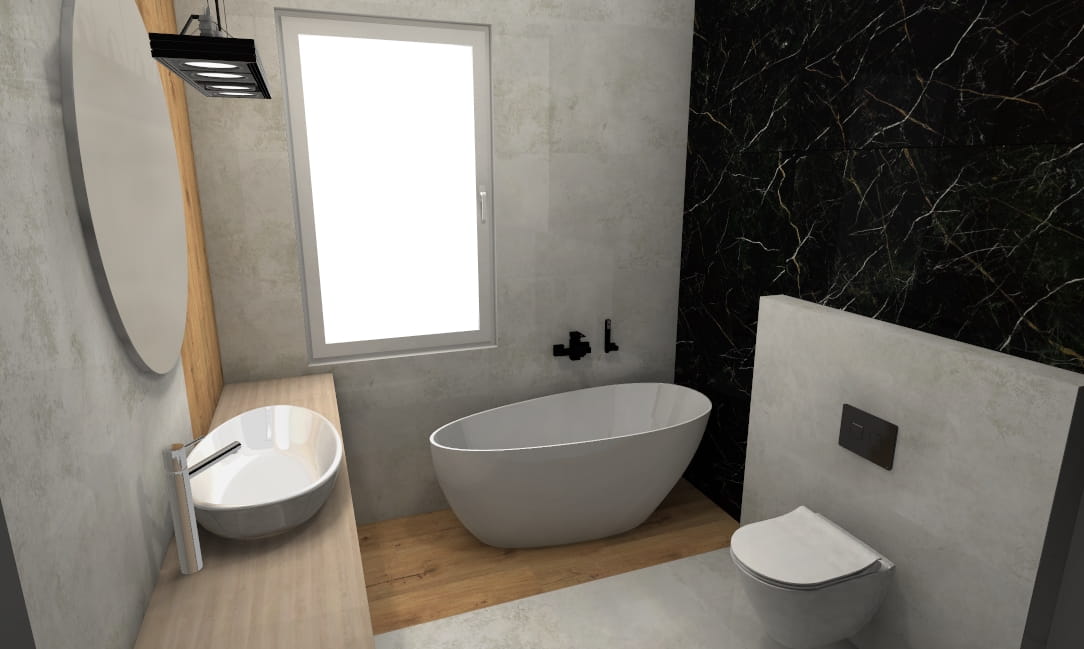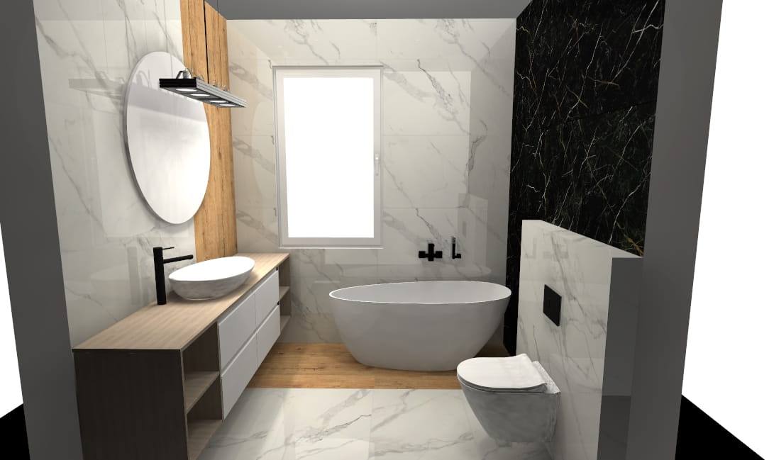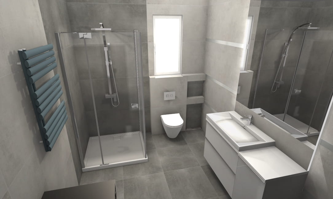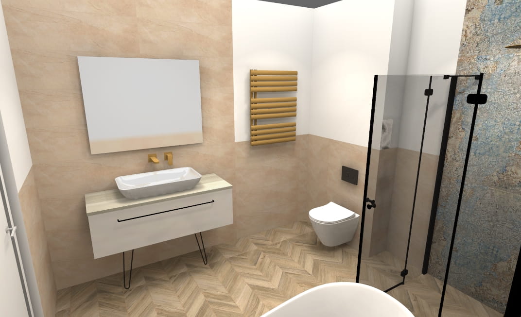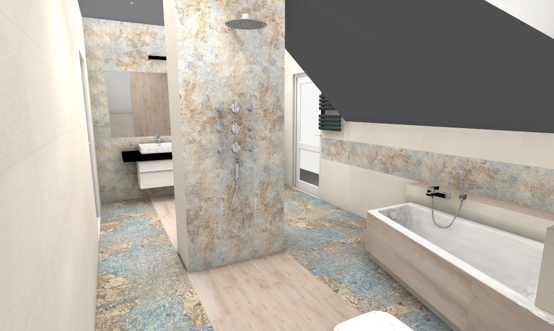 - Nasz projektant tworzy indywidualną wizualizację 3D + rozkład płytek i listew