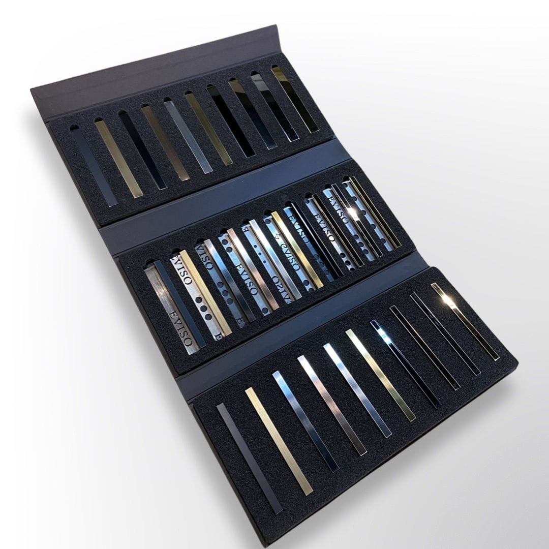 Wzorniki produktowe to nieocenione narzędzie dla projektantów wnętrz, architektów oraz klientów indywidualnych, którzy pragną dokonać najlepszego wyboru materiałów wykończeniowych. Oferujemy Państwu wzornik opakowany w eleganckie pudełko co ułatwia ich przechowywanie oraz prezentacje.
