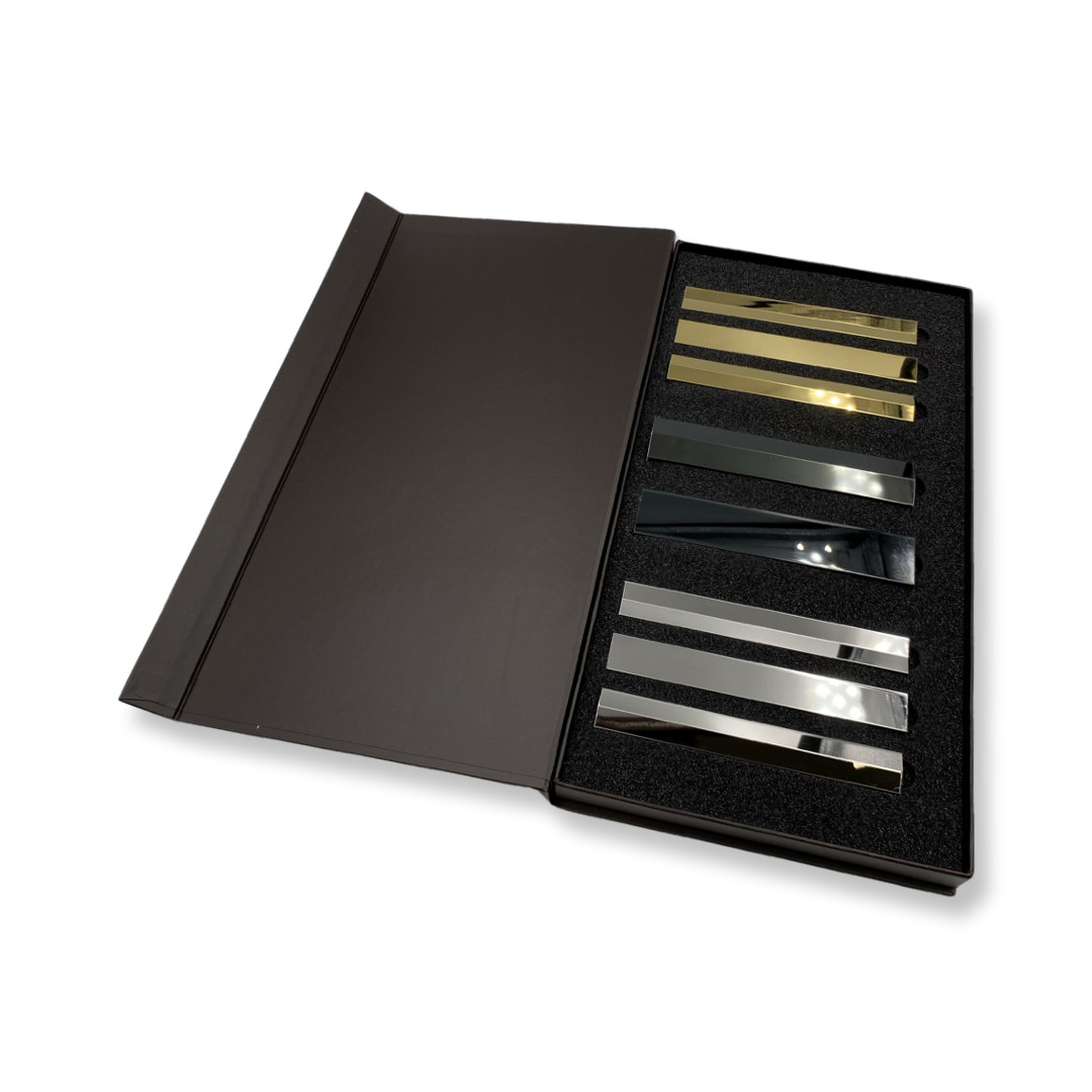 Wzorniki produktowe to nieocenione narzędzie dla projektantów wnętrz, architektów oraz klientów indywidualnych, którzy pragną dokonać najlepszego wyboru materiałów wykończeniowych. Oferujemy Państwu wzornik opakowany w eleganckie pudełko co ułatwia ich przechowywanie oraz prezentacje.