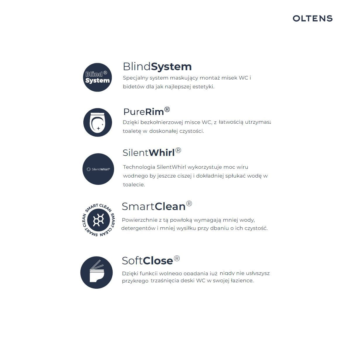 Zestaw Oltens Hamnes Stille miska WC wisząca PureRim z powłoką SmartClean z deską wolnoopadającą Ovan Slim biały 42522000