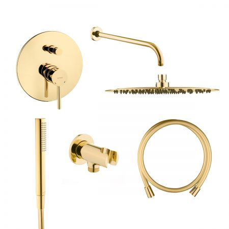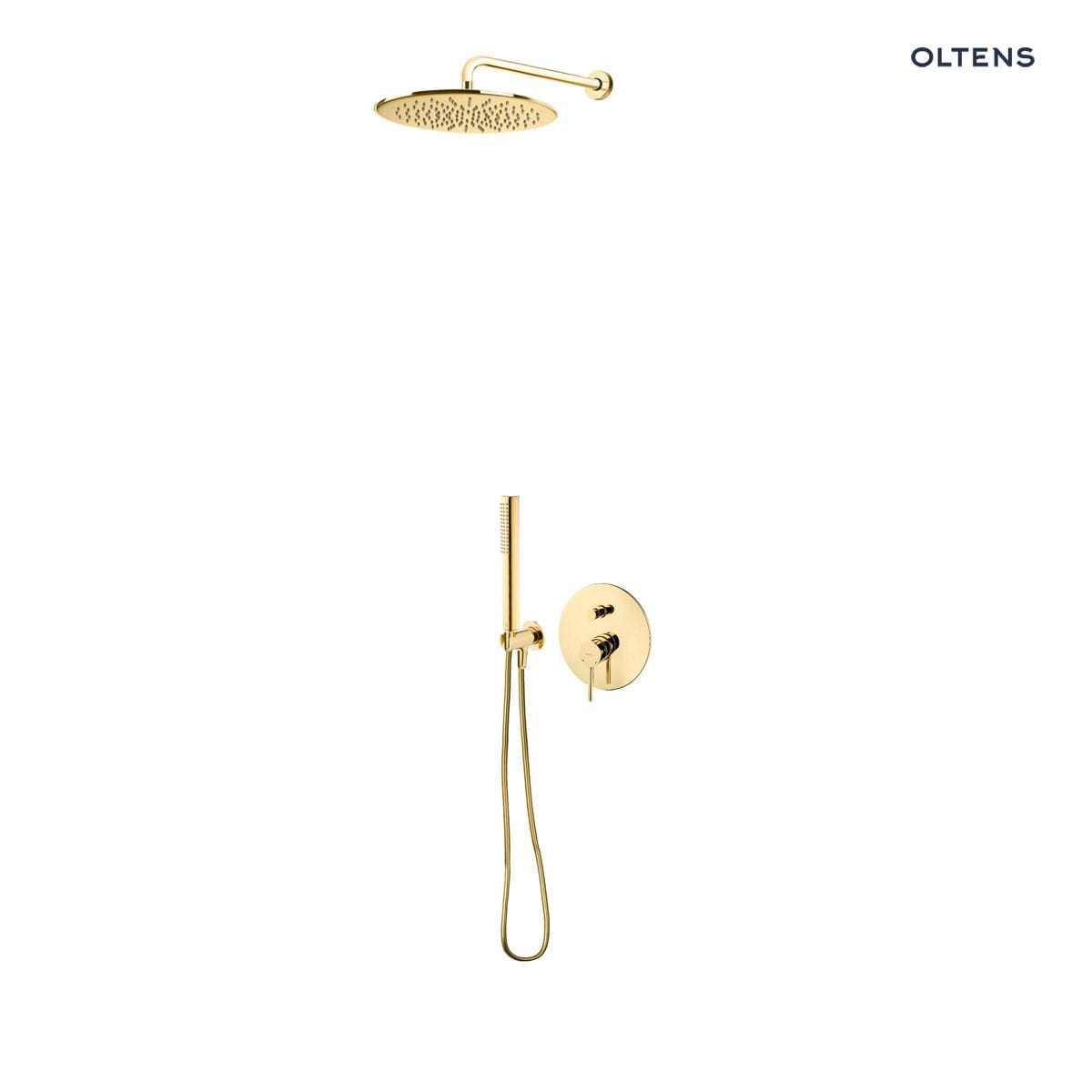 Zestaw Oltens Molle bateria podtynkowa z deszczownicą 30 cm Vindel i kompletem prysznicowym Ume złoty (34100800, 37000800, 39400800, 37102800, 37200800, 39304800)