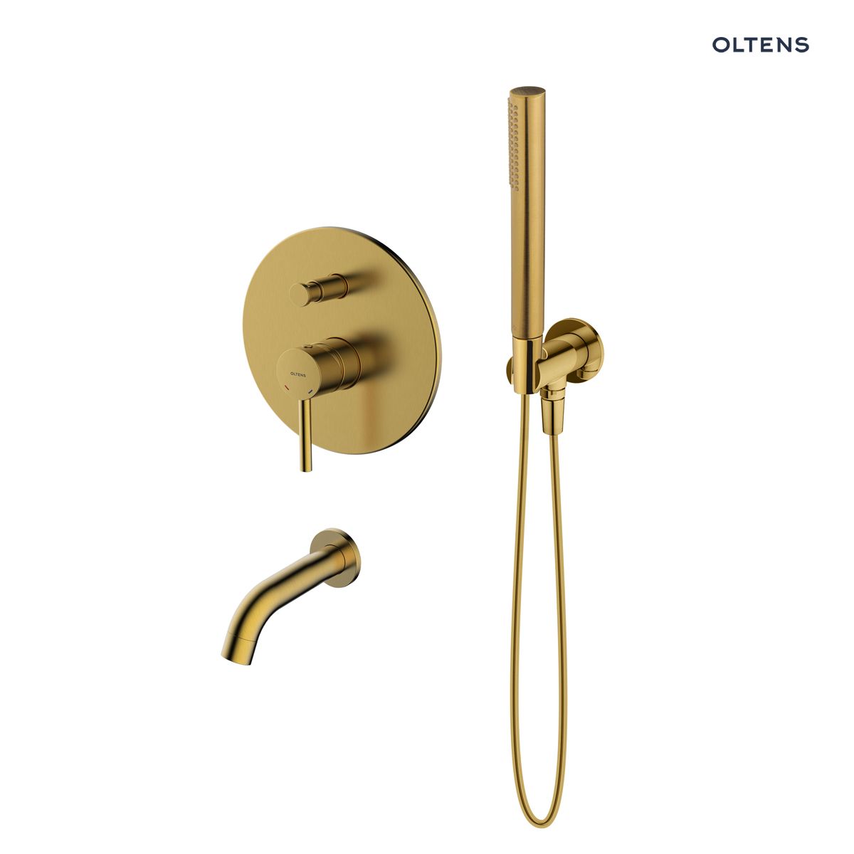 Zestaw Oltens Molle bateria podtynkowa z wylewką i kompletem prysznicowym Ume złoto szczotkowane 36602810