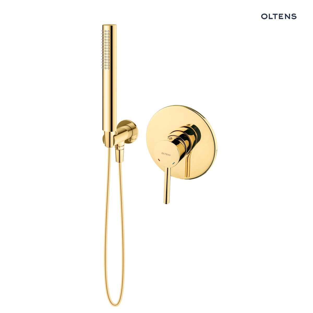 Zestaw Oltens Molle bateria prysznicowa podtynkowa z zestawem prysznicowym Ume Hvita złoty połysk 36612800