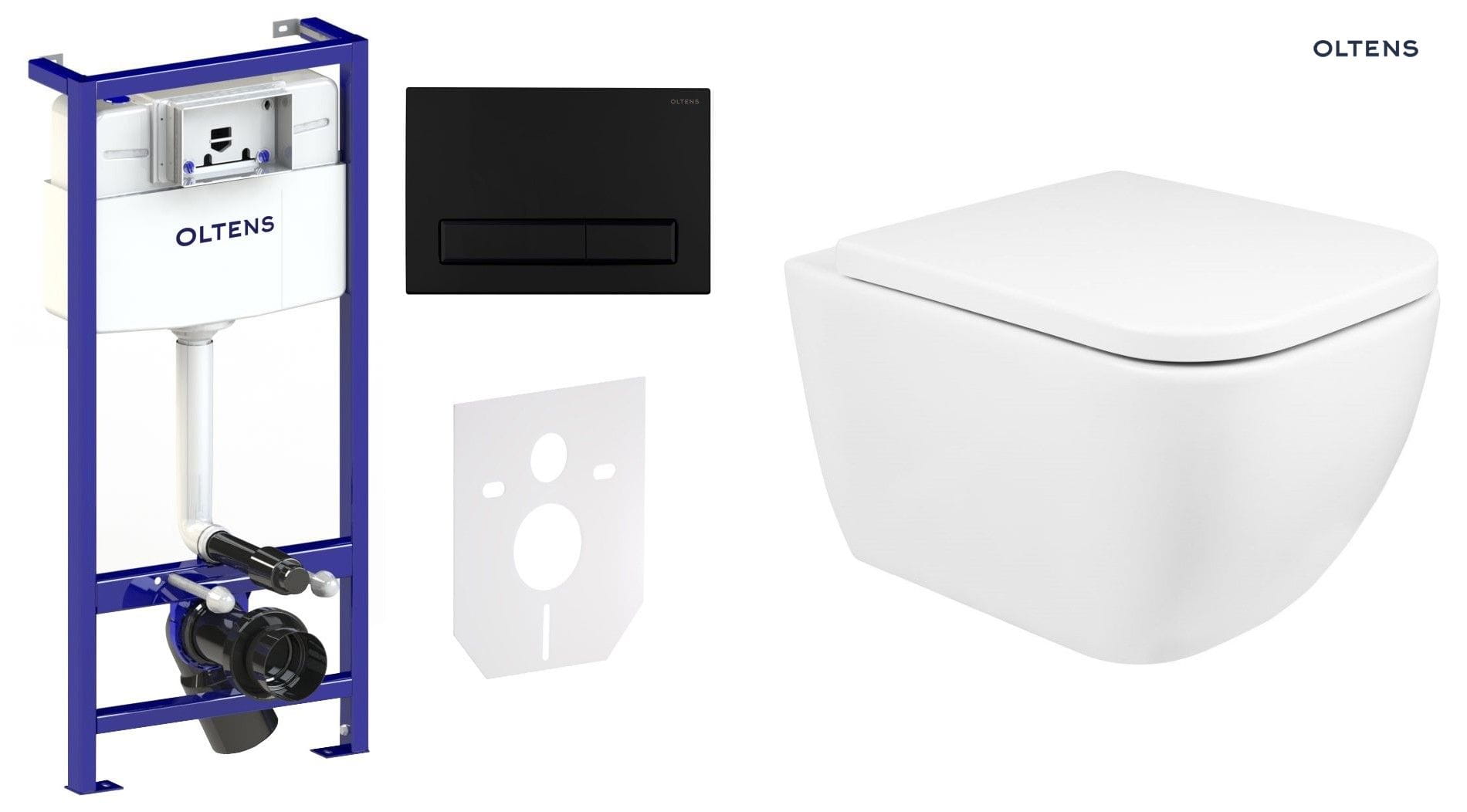 Zestaw Oltens Triberg Vernal Torne 7w1 stelaż podtynkowy miska z deską 42507000 i przycisk spłukujący czarny mat 58304300