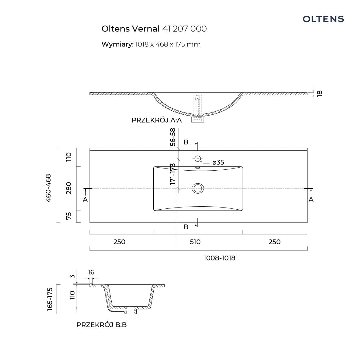 Oltens Vernal umywalka 101×46 cm prostokątna czarna 41207300