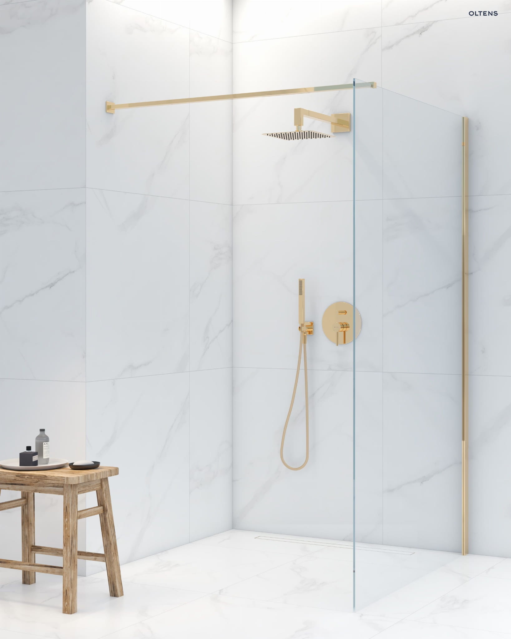 Zestaw Oltens Vindel (S) Lagan (S) deszczownica 30 cm kwadratowa z ramieniem ściennym złoty 36014800